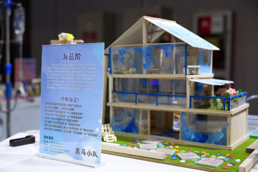 闪借球仓、AI植物演奏家、冥想沙画桌……同学们的作品从生活中来,到应用中去,生动展现了静安学子敏锐的观察力、扎实的创新力和深厚的社会责任感。万航渡路小学的赵沐容设计了雨伞烘干器,兼具雨具架收纳功能与烘干功能,通过旋转甩干、加速空气对流、升高空气温度的方式,实现雨具短时间自助烘干。民办扬波中学的叶卓文将“尺规作图“的理念与现实生活中的圆规结合,突破了传统尺规作图不能任意分角的局限性,设计出一款便于使用的可以任意等分任意角的圆规,并可以快速做出任意正n边形。市北中学通过“荧光护板”提升光伏发电效率的巧妙设计,无需复杂装置与高温环境,提高光电转化率,助力新能源普及与环保。
